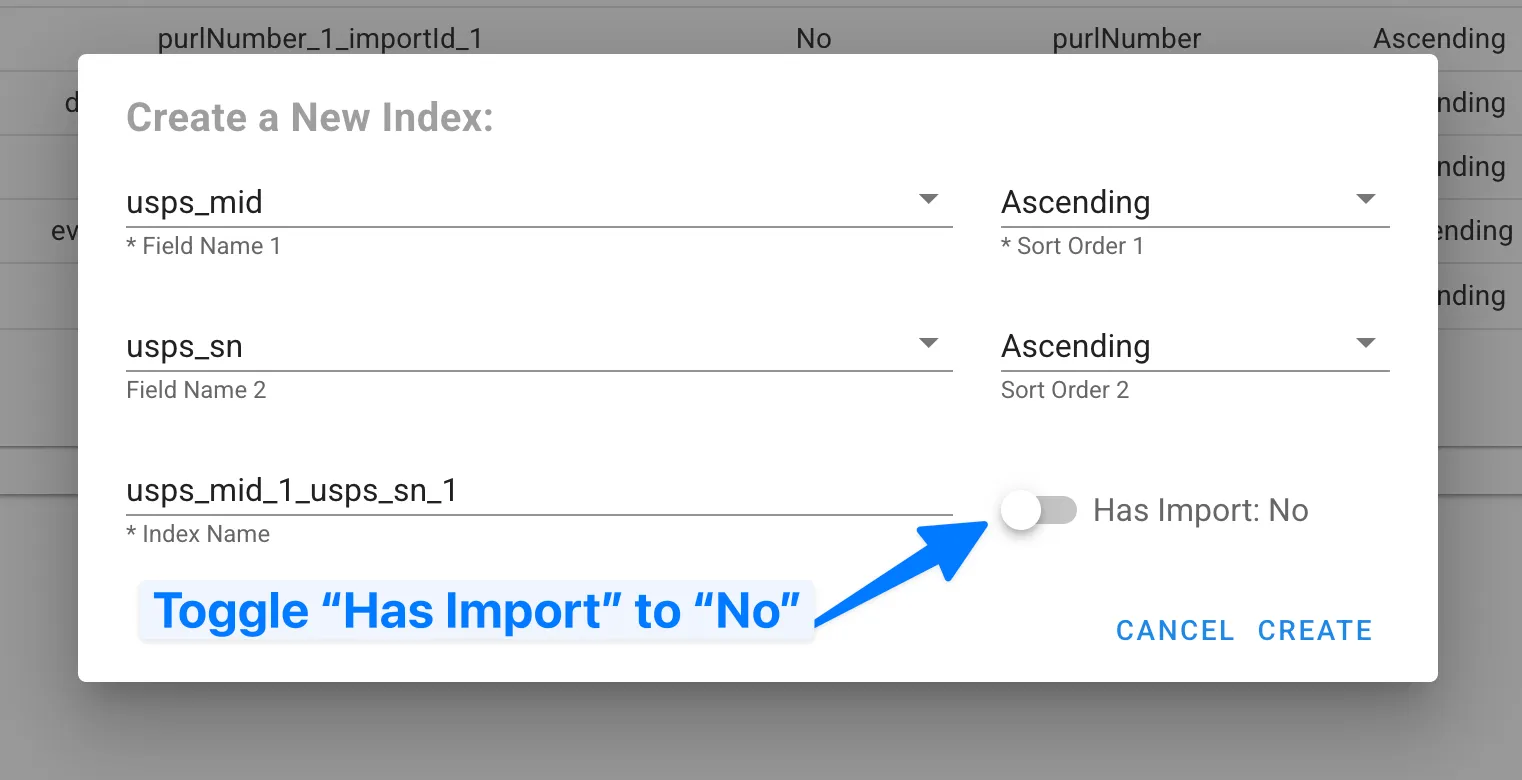 usps_snas the second index field with Ascending order - Click Create to build the index